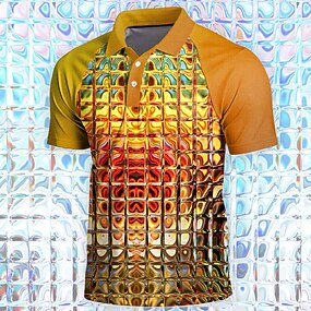 Муж. Графика Рубашки поло Рубашка для гольфа С короткими рукавами Футболки поло Рубашки с воротником Одежда для отпуска Одежда в стиле рейв Наряды для вечеринок 3D печать Пуговицы Весна лето Золотой