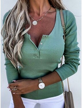 Жен. Блуза Сплошной цвет Стиль На каждый день Длинный рукав V-образный вырез Обычные топы Повседневные Пуговицы Розовый Винный Темно синий Зеленый Бежевый Весна Осень