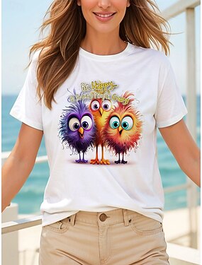 Жен. Футболка Графика Животное Птица Винтаж Стиль Классика С короткими рукавами Вырез под горло Круглый вырез Обычные топы Повседневные С принтом Белый Розовый Светло-синий Лето Весна