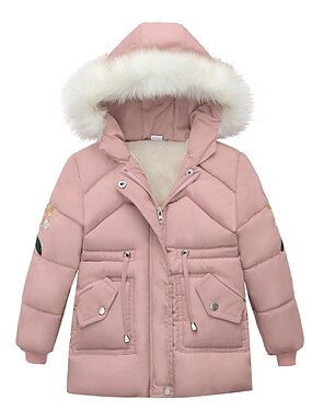 Дети Девочки Пуховик Куртка для активного отдыха Сплошной цвет Мода Меховая оторочка Сохраняет тепло Защита от ветра на открытом воздухе Пальто Верхняя одежда 4-12 лет Осень Розовый Лиловый Бежевый