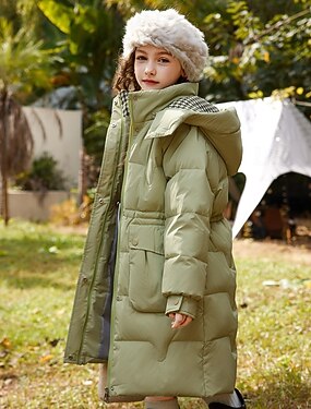 Дети Девочки Пуховик Сплошной цвет Симпатичные Стиль Карман Пуговицы Школа Пальто Верхняя одежда 4-12 лет Зима Черный Светло-зеленый Розовый