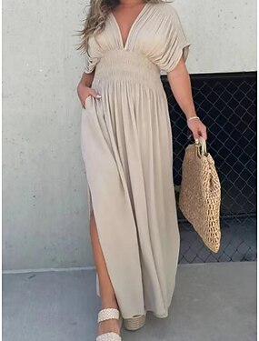 Жен. длинное платье платье макси Белое платье Повседневное платье Платье в стиле 50-х годов Летнее платье Мода Современное Повседневные Праздники Пляж Стандартный Полотняное плетение