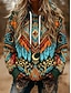 Жен. Туника Графика Огурцы Мандала Винтаж Стиль Классика Длинный рукав Рубашечный воротник Обычные топы Повседневные Спорт На выход Синий Лето Весна Осень