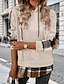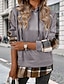 Жен. Толстовка с капюшоном и пуловером Графика В клетку На каждый день Длинный рукав Капюшон Обычные топы Для улицы На каждый день Повседневные Синий Коричневый Зеленый Осень Зима