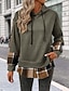 Жен. Толстовка с капюшоном и пуловером В клетку Винтаж На каждый день Длинный рукав Капюшон Обычные топы Для улицы Повседневные Спорт Кулиска Пэчворк