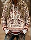 Жен. Pullover Худи Цветочный принт Винтаж Этнический На каждый день Длинный рукав Капюшон Обычные топы На каждый день Повседневные Спорт Кулиска Карман С принтом Винный Весна Осень