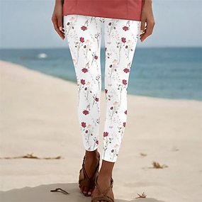 Жен. Брюки Леггинсы Уютные леггинсы Уличный стиль На каждый день Полная длина Средняя талия Цветы Эластичная талия С принтом удобный На открытом воздухе Удобный