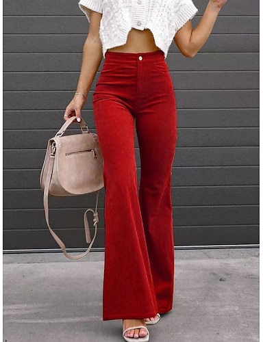 Жен. Расклешенные брюки Чино Мода Уличный стиль Полная длина Завышенная Полотняное плетение Высокий вырез Комфорт На открытом воздухе Слабоэластичная Офис Для улицы Повседневные