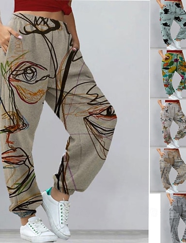 Жен. Широкие Чино Мешковатые брюки Винтаж Классический На каждый день По щиколотку Завышенная Цветочный принт Графика Леопард Кулиска Пэчворк Рисунок Дышащий Неэластичная