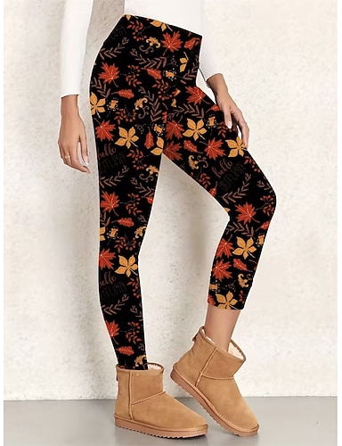 Жен. Леггинсы Отпуск Винтаж Мода Полная длина Завышенная Цветочный принт Графика Рисунок Сохраняет тепло Мягкий Дышащий Эластичная Официальные на открытом воздухе Отпуск Оранжевый Весна Осень
