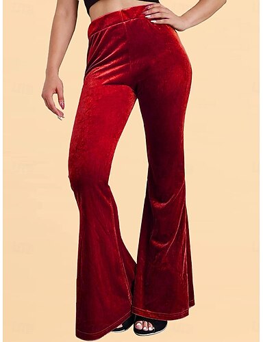 Жен. Расклешенные брюки Чино Мода Уличный стиль На каждый день Полная длина Завышенная Полотняное плетение удобный Мягкий Удобный Эластичная на открытом воздухе Для улицы Черный Красный Кофейный Серый