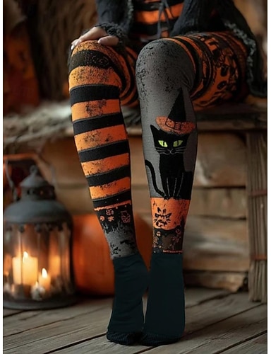 Жен. Брюки Леггинсы Уютные леггинсы Уличный стиль На каждый день Полная длина ЗавышеннаяPantsHalloween Кот Эластичная талия С принтом Воздухопроницаемость Удобный Эластичная