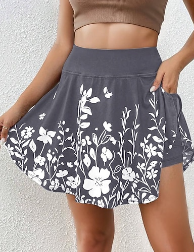 Жен. Юбки А-силуэт Мода На каждый день Мини Завышенная Подол Цветочный принт С принтом Эластичная Для улицы Повседневные Черный Красный Синий Лиловый Лето Трикотаж Полиэстер