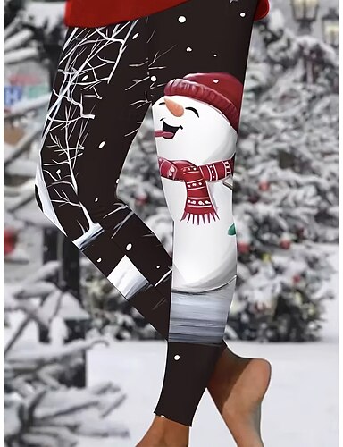 Жен. Леггинсы Отпуск Винтаж Мода Полная длина ЗавышеннаяPantsНовогодняя тематика Графика Снеговик Рисунок Сохраняет тепло Мягкий Дышащий Эластичная Официальные на открытом воздухе Отпуск Черный Белый