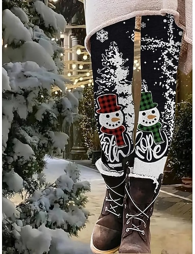 Жен. Чино Леггинсы Уютные леггинсы Отпуск На каждый день Полная длина ЗавышеннаяPantsНовогодняя тематика Снеговик В снежинку Рисунок Сохраняет тепло Удобный Эластичная Отпуск Повседневные Праздники