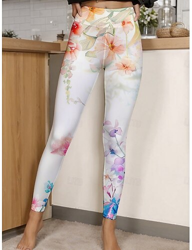 Жен. Брюки Леггинсы Уютные леггинсы Уличный стиль На каждый день Полная длина Завышенная Цветы Эластичная талия С принтом Воздухопроницаемость Удобный Эластичная Отпуск Для улицы На каждый день