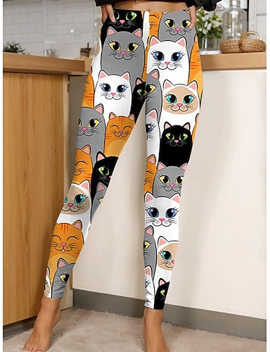 Жен. Леггинсы Отпуск Винтаж Этнический стиль Полная длина Завышенная Графика Кот 3D печать Быстровысыхающий Воздухопроницаемость Мягкий Эластичная на открытом воздухе Дом Повседневные