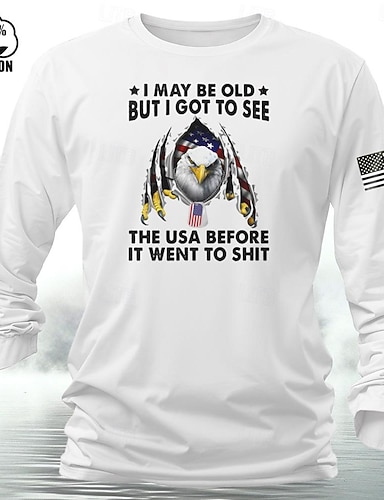Мужская футболка с длинным рукавом 'Я могу быть старым но я успел увидеть США прежде чем все пошло к черту' - патриотическая графическая футболка с американским орлом
