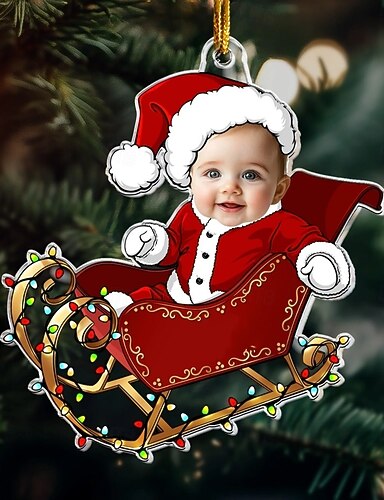 Персонализированные рождественские украшения с фото акриловые 2D кастомные рендеры с лицом младенца для ёлки рождественские декорации подарки в виде висячих подвесок