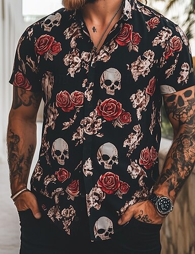 Муж. Ретро Костюмы на Хэллоуин День мёртвых Рубашка Летняя рубашка Кнопка рубашка С короткими рукавами Темный готический стиль на открытом воздухе Праздники Лето Весна Отложной 3D