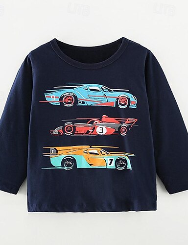 Мальчики 3D Графика Автомобиль Футболка Длинный рукав Весна Осень Мода Классический Маленькие дети (4-7 лет) 4-7 лет Вырез под горло на открытом воздухе Повседневные Стандартный