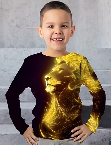 Мальчики 3D Графика Животное Лев Футболка Длинный рукав 3D печать Лето Весна Осень Спорт Мода Уличный стиль Дети 3-12 лет на открытом воздухе Повседневные Стандартный