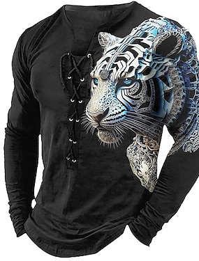 Муж. Футболка Графика Животное Воротничок Одежда 3D печать Повседневные На выход Длинный рукав Шнуровка С принтом Полиэстер Мода Оригинальный рисунок Удобный