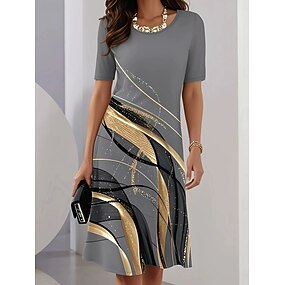Элегантное вечернее миди-платье для женщин с круглым вырезом коротким рукавом свободного кроя А-образное платье летнее платье стильное каждый день обычная посадка омбре графический рисунок черный
