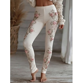 Жен. Леггинсы Уютные леггинсы Отпуск Винтаж На каждый день Полная длина Завышенная Цветочный принт Рисунок Удобный Эластичная Повседневные Отпуск Для улицы Белый Весна Осень Приталенный крой