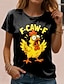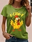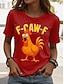 Жен. Футболка Графика Петух Буквы Винтаж Стиль Классика С короткими рукавами Вырез под горло Обычные топы Повседневные выходные С принтом Черный Красный Синий Зеленый Весна, осень, зима, лето