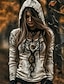 Женский винтажный свитер с капюшоном в стиле викингов с цветочным принтом, элегантный, теплый, для активного отдыха, с длинным рукавом и капюшоном, обычные топы, повседневный, с принтом в стиле