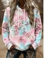 Жен. Толстовка с капюшоном и пуловером Цветочный принт Графика Элегантный стиль Теплый Активный Длинный рукав Капюшон Обычные топы Для улицы На каждый день Повседневные Пэчворк С принтом