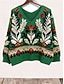 Жен. Вязаная ткань Пуловер Мода Уличный стиль На каждый день Цветочный принт V-образный вырез Крупногабаритные Трикотаж Длинный рукав Обычные топы Вязать на открытом воздухе Повседневные Зеленый