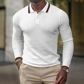 Муж. Вафельная рубашка поло Рубашка для гольфа Повседневные Праздники Лацкан Классика Длинный рукав Мода Классический Полотняное плетение кнопка Лето Стандартный
