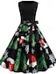 Жен. Платье средней длины Рождественское платье Платье для вечеринки Платье в стиле 50-х годов Элегантный стиль Современное Рождество на открытом воздухе Для вечеринок Стандартный Цветочный принт