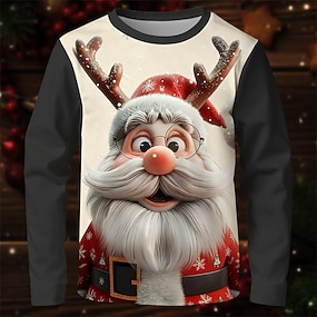 Новогодняя тематика Мальчики 3D Дед Мороз Футболка Длинный рукав Весна Осень Мода Классический Дети 4-12 лет Вырез под горло на открытом воздухе Повседневные Стандартный