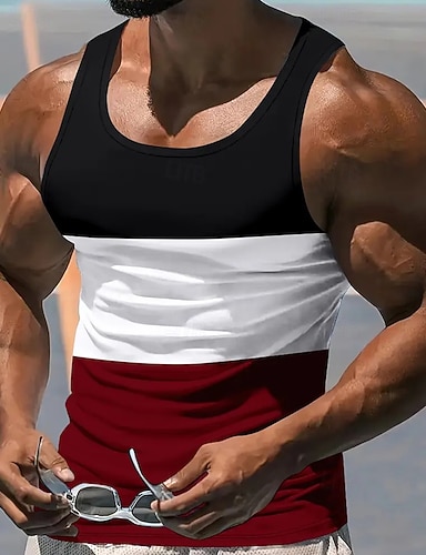 Муж. Безрукавка Жилет Майки Без рукавов Вырез под горло V-образный вырез Лето Полотняное плетение С принтом День независимости Мода Спортивные Классика Быстровысыхающий Для улицы спорт Повседневные