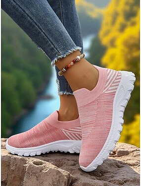 Женские розовые кеды Flyknit с белой подошвой – легкая повседневная обувь для фитнеса, путешествий и повседневной носки