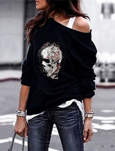 Жен. Пуловер Толстовка Графика Черепа Хэллоуин Активный Мода Уличный стиль Длинный рукав Вырез под горло Обычные топы Для улицы На каждый день Повседневные С принтом Черный Красный Синий Зеленый Серый