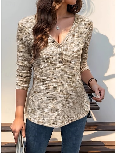 Жен. Блуза Сплошной цвет Стиль На каждый день Длинный рукав V-образный вырез Обычные топы Повседневные Пуговицы Розовый Небесно-голубой Коричневый Хаки Весна Осень Зима
