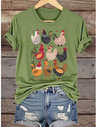 Жен. Футболка Графика Животное Петух Винтаж Стиль Классика С короткими рукавами Круглый вырез Обычные топы Повседневные С принтом Черный Красный Зеленый Лето