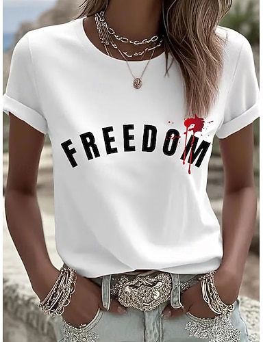 Жен. Футболка Графика Буквы Винтаж Стиль Классика С короткими рукавами Вырез под горло Круглый вырез Обычные топы Повседневные выходные С принтом Черный Красный Синий Зеленый Лето Весна