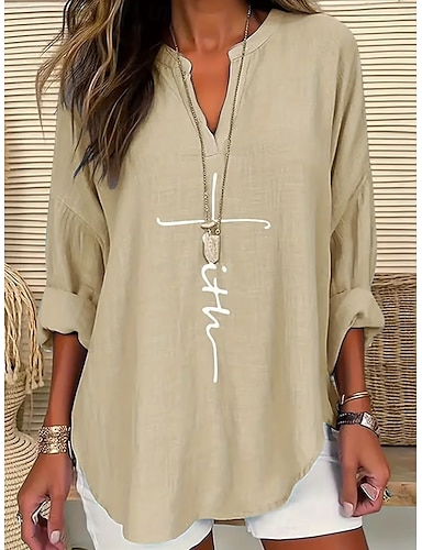 Блузка Туника Женская V-образный Вырез Длинный Рукав Бохо Повседневные Топы Графический Буква Активный Ежедневные Обычные Топы Повседневная Печать Белый