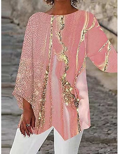 Жен. Блуза С принтом Абстракция Повседневные Стиль Длинный рукав Вырез под горло Обычные топы Повседневные Праздники С принтом Асимметричный шов Розовый Лето Весна