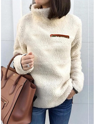 Жен. Блуза Сплошной цвет Стиль На каждый день Длинный рукав Хомут Обычные топы Повседневные Черный Белый Розовый Коричневый Бежевый Весна Осень Зима