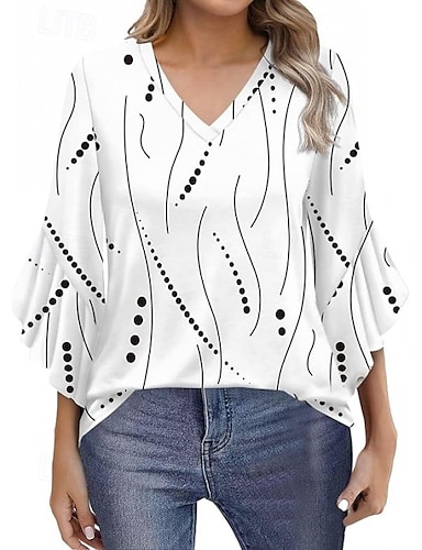 День Святого Валентина Жен. Блуза Богемия Мода модный Рукав 3/4 V-образный вырез Обычные топы Повседневные Наряды для вечеринок Наряды для свиданий Черный Белый Розовый Красный Синий Весна Осень