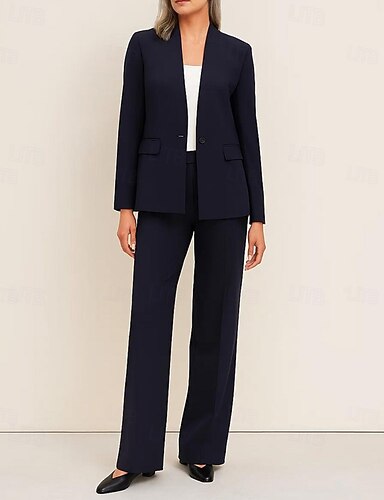 Жен. Костюмы-2 Официальные Свадебный гость Стретч-креп Элегантный стиль минималист Длинный рукав До щиколотки Пик отворот Однобортный крой