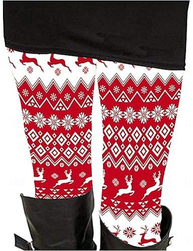 Жен. Чино Леггинсы Уютные леггинсы Отпуск На каждый день Полная длина ЗавышеннаяPantsНовогодняя тематика Северный олень Рисунок Сохраняет тепло Удобный Эластичная Отпуск Повседневные Праздники Красный