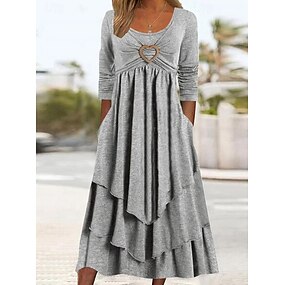 Жен. Платье средней длины Повседневное платье Мода Современное Отпуск Повседневные выходные Стандартный Полотняное плетение Длинный рукав Вырез под горло Коричневый Зеленый Светло-серый Весна Осень