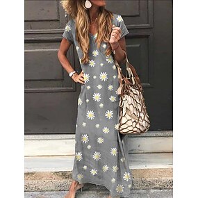 Жен. длинное платье платье макси Повседневное платье Летнее платье Мода Отпуск Повседневные Праздники Свободное облегание Цветочный принт маргаритка С короткими рукавами V-образный вырез